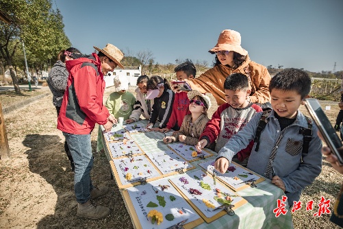 家长陪同孩子寻找杂草。 长江日报记者陈卓 摄
