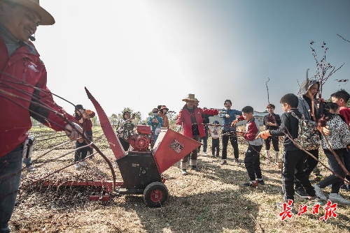 打碎洛神枝条,自制肥料。 长江日报记者陈卓 摄