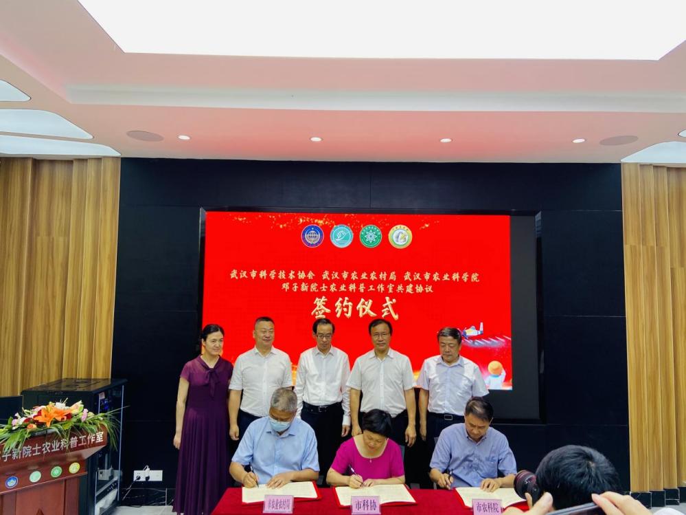 2021年6月11日,武汉市科学技术协会(以下简称武汉市科协)、武汉市农业农村局、武汉市农业科学院(以下简称武汉市农科院)签署三方合作协议,率全国之先,共建以中国科学院微生物学家邓子新院士领衔命名的科普创新平台——“邓子新院士农业科普工作室”。