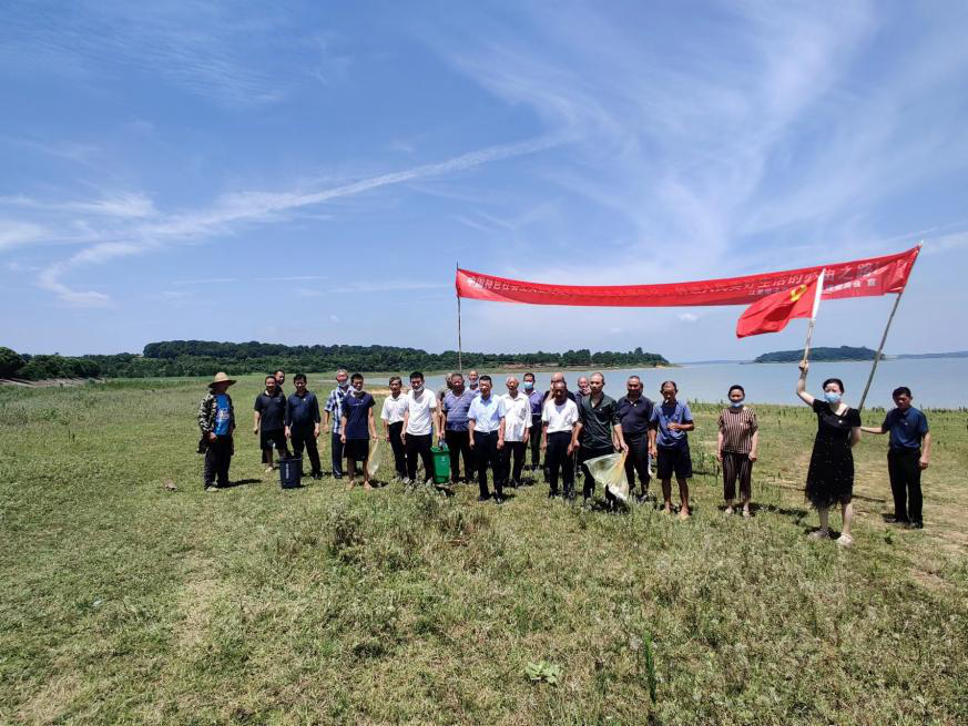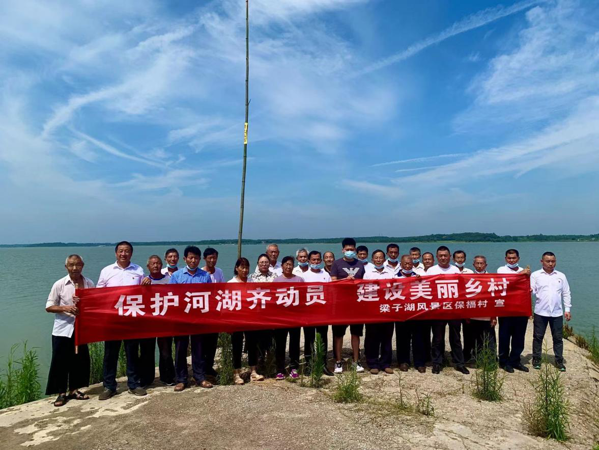 远景村党支部同步开展“党员助力乡村振兴”活动,在梁子湖沿岸巡察、清洁卫生,建设美丽乡村,创造宜居环境。