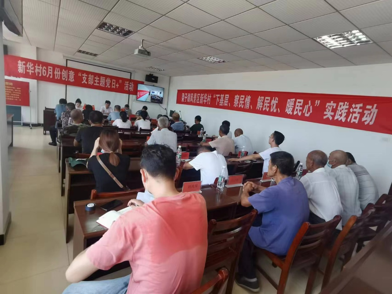 6月29日,新华村党支部召开了庆“七一”党员大会,以开展党员干部“下基层、察民情、解民忧、暖民心”实践活动为契机,集中学习《中共武汉市江夏梁子湖风景区关于党员干部下基层察民情解民忧暖民心实践活动实施方案》,以“擦亮生态名片,喜迎党的二十大”为主题给全体党员上党课。会后,全体党员实地参观新华村老红军露营地,学习老红军坚忍不拔自强不息的革命精神,传承红色基因。