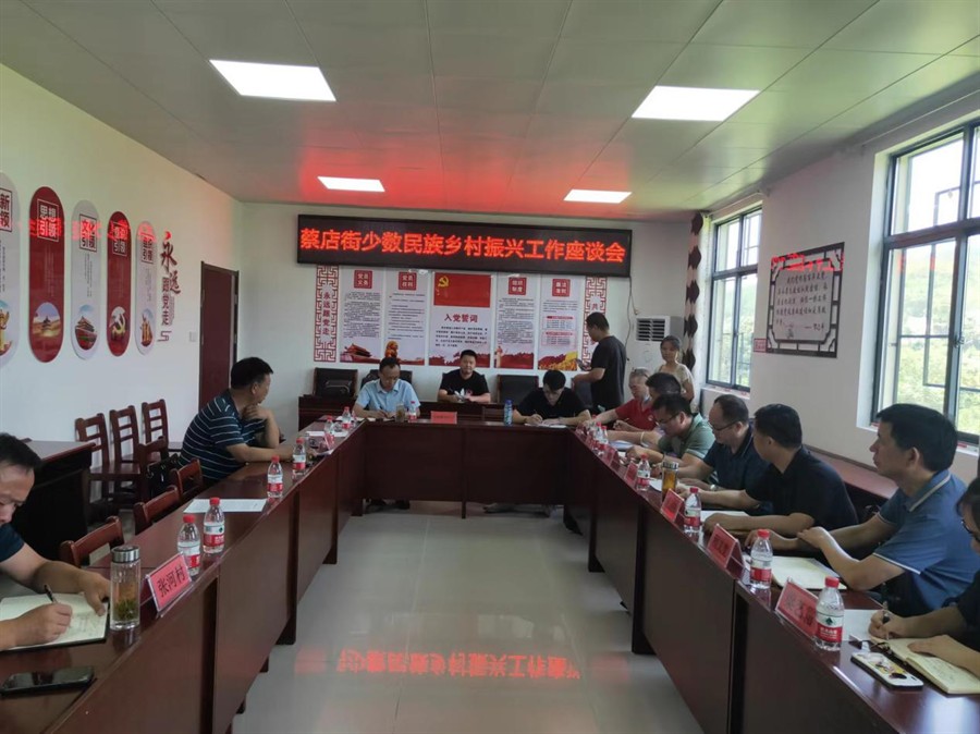 现场考察结束后,调研组在张家河村村委会召开座谈会。会上,蔡店街相关负责人作蔡店街民族团结进步工作介绍,张河村有关负责人介绍田家湾乡村振兴相关情况。调研组专家和有关领导围绕如何凝聚思想、理清思路、找准定位,挖掘好土家文化,做大做强田家湾武汉土家第一村等方面与蔡店街道、张河村相关负责人进行了互动交流,了解工作中存在的问题和困难,收集了一批建议意见。
