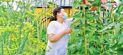 市民在花博汇市民农园种菜。