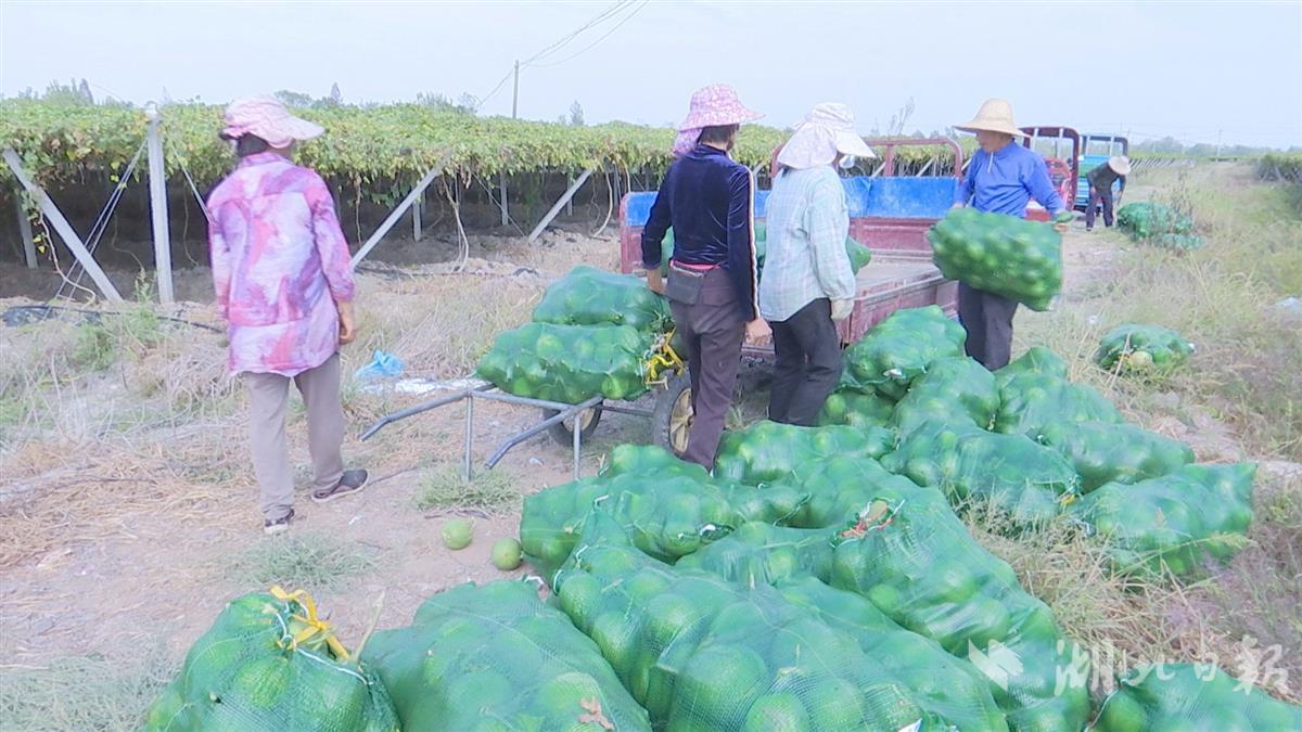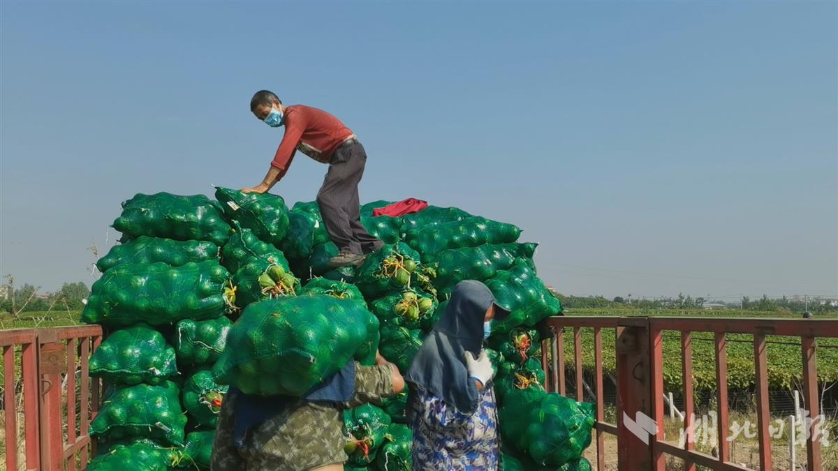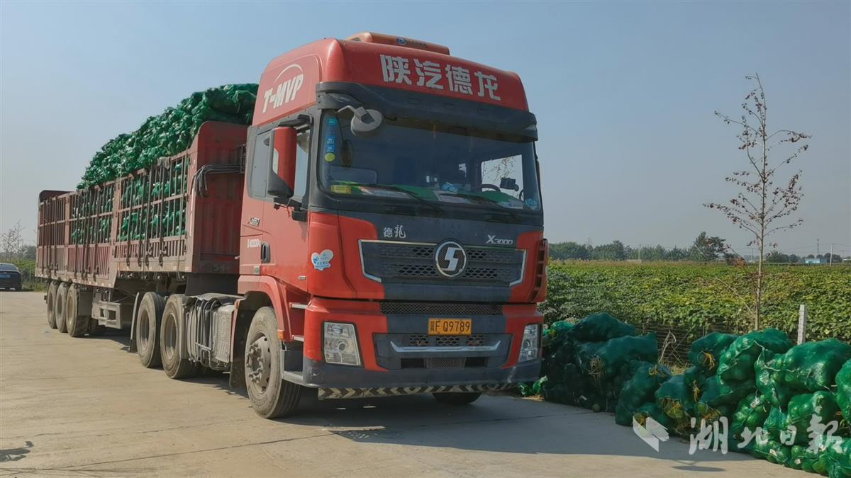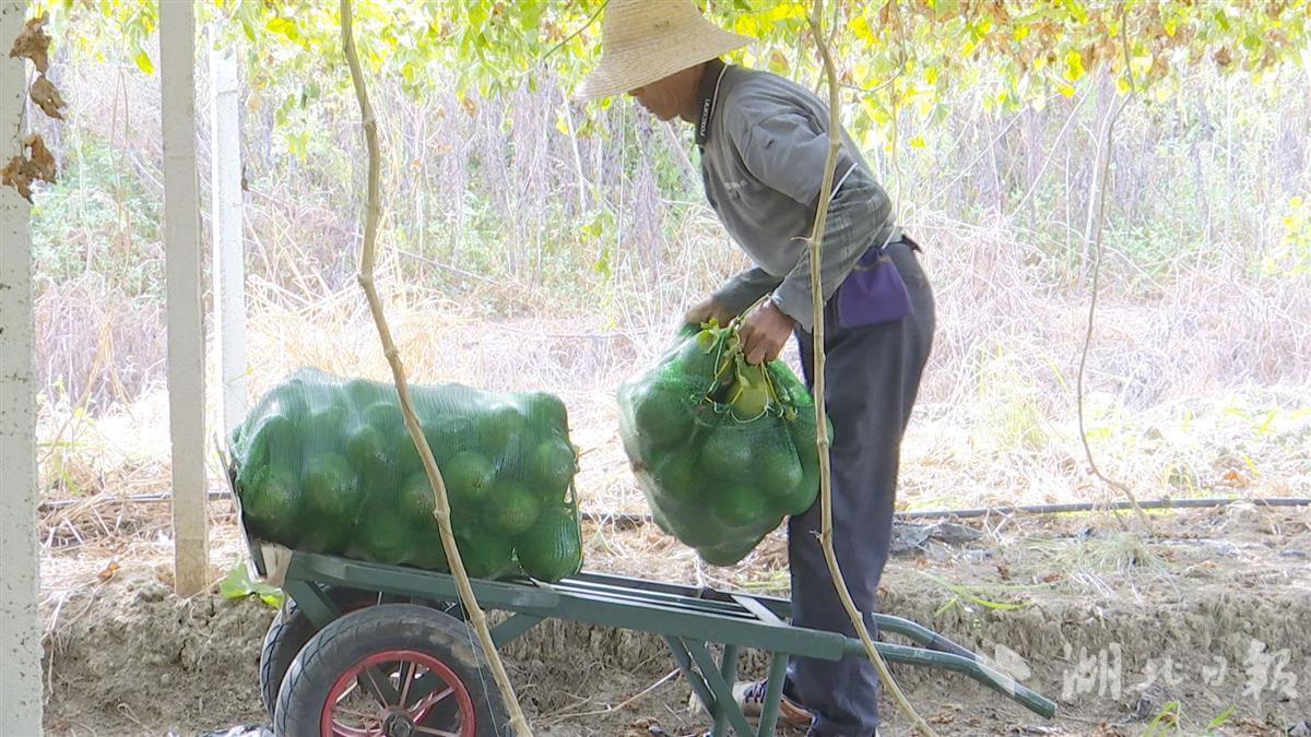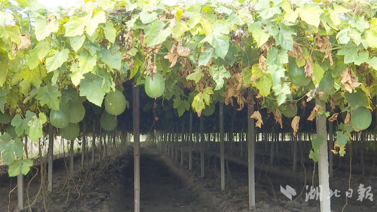 近日,在武汉市新洲区三店街左桥村瓜蒌种植基地内,工人们穿梭在瓜蒌架下,正忙着采摘绿油油的青瓜蒌。路边的大货车上,装好的青瓜蒌被一一搬上车厢,园内一片丰收的景象。