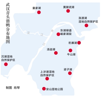 11月1日,武汉市观鸟协会发布了武汉青头潜鸭分布地图,迎接即将在武汉开幕的《湿地公约》第十四届缔约方大会。
