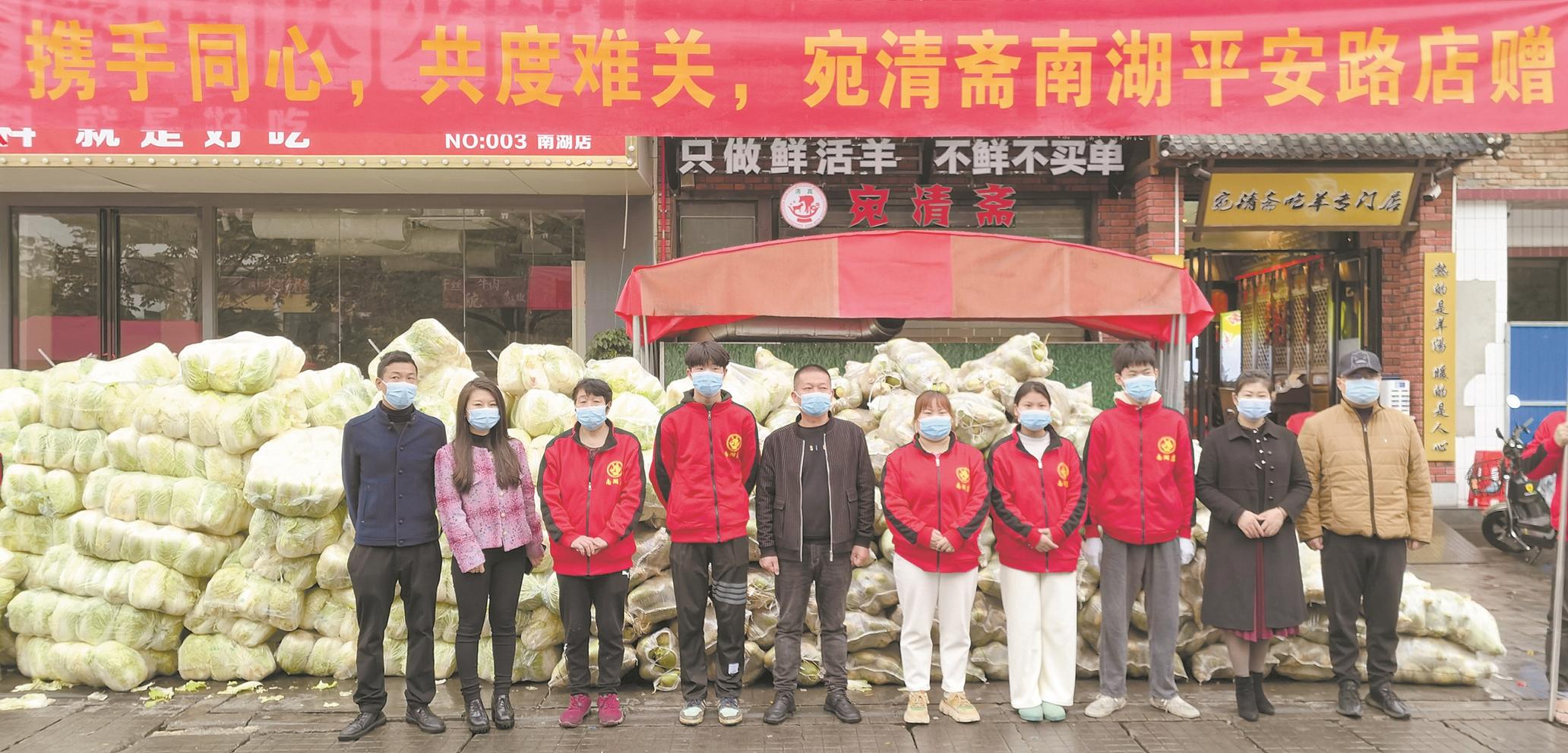 11月28日凌晨时分,一辆满载着爱心的大货车缓缓驶进武汉市武昌区南湖街道,停在位于平安路的餐馆宛清斋门前。