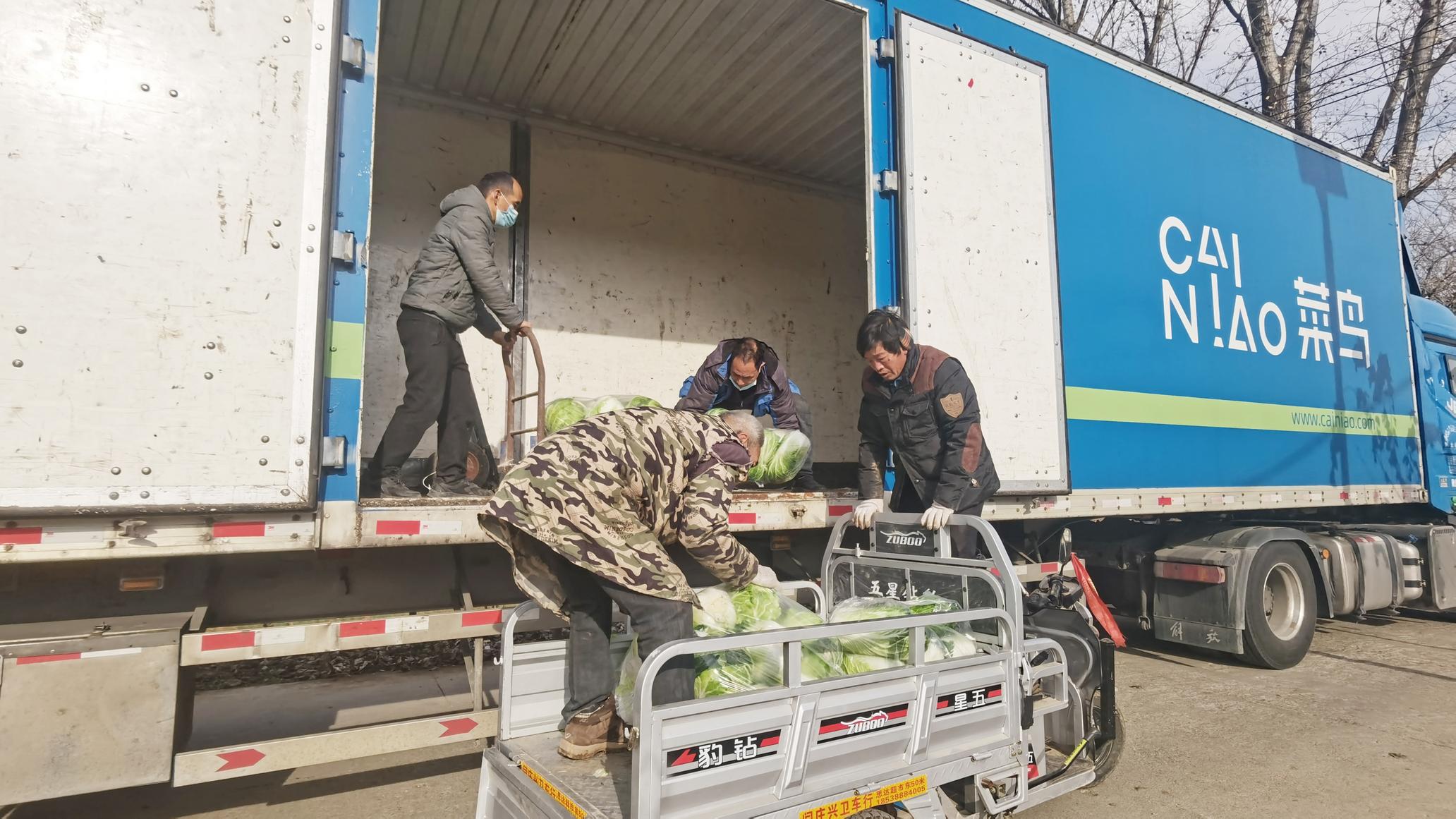 2日中午12时20分,菜鸟应急物流紧急调配的厢式货车,到达河南省洛阳市嵩县闫庄镇,与“大葱哥”朱德林会合。