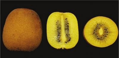 猕猴桃果实采摘后要存放一段时间,转化变软后才能吃,这个过程叫后熟;果实风味也由采收时的重酸味,变为酸甜适宜或口感很甜。绿肉猕猴桃在后熟过程中,叶绿素不降解或降解较少,因此呈现不同程度的绿色;黄肉猕猴桃在后熟过程中,叶绿素会不断降解,至最后几乎全部消失,而呈现叶黄素或类胡萝卜素,因此果肉为黄色;红肉猕猴桃果实含有丰富的花青素,花青素含量越高,果肉越红。