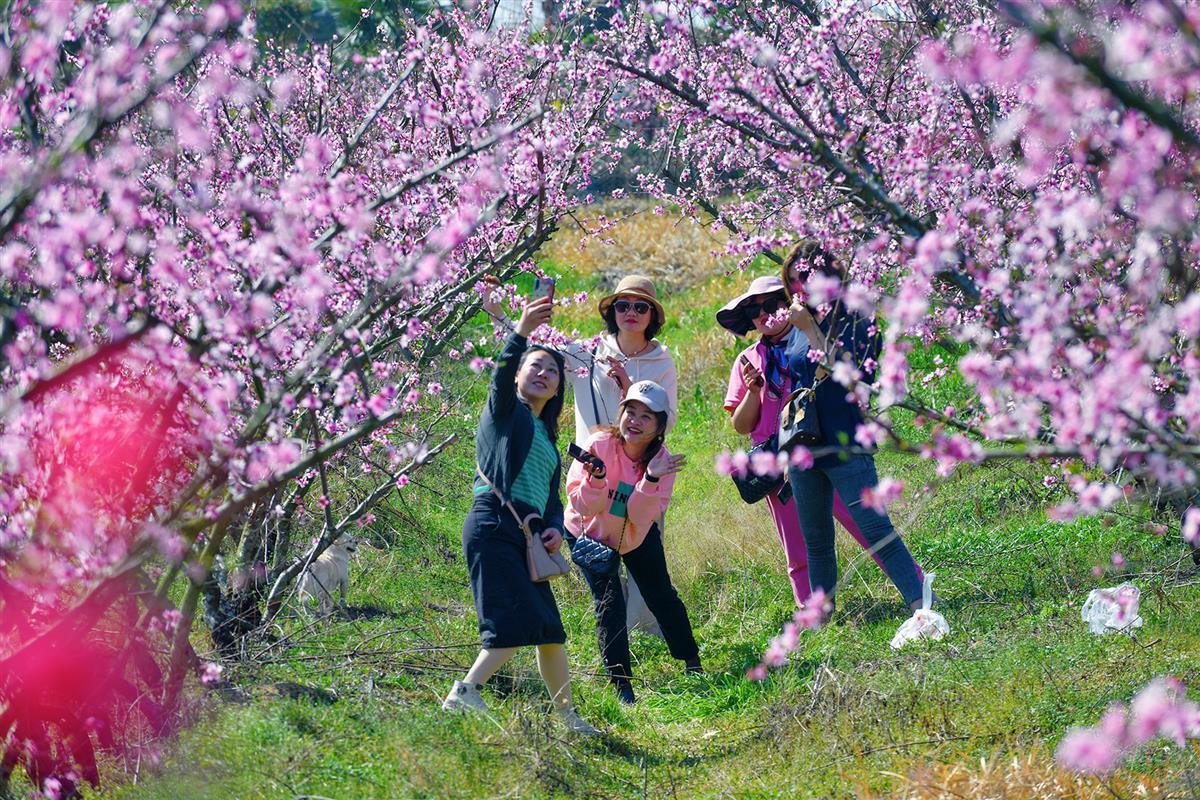 人间三月芳菲尽,枝头桃花始盛开。寻着春天的脚步,3月14日,武汉市新洲区三店街第五届桃花节在宋寨村诗李桃花文化园区开幕,吸引周边上千游客前来信步徜徉在绯红的花海中,体验浓浓的花海气息。