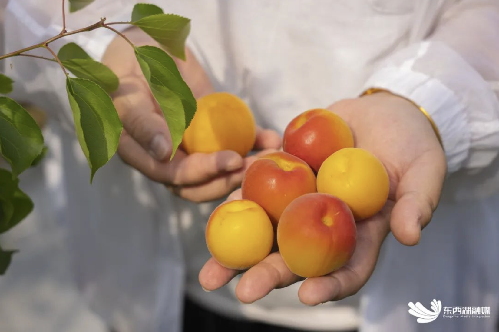 邵中奎的采摘园有15亩地,主要以桃子、桑葚和葡萄为主,红杏是夫妻俩近几年才开始试种的品种,偶然的机会,让夫妻俩品尝到新疆本地的红杏,被红杏独特的口感所吸引,他们就想把它带回东西湖。