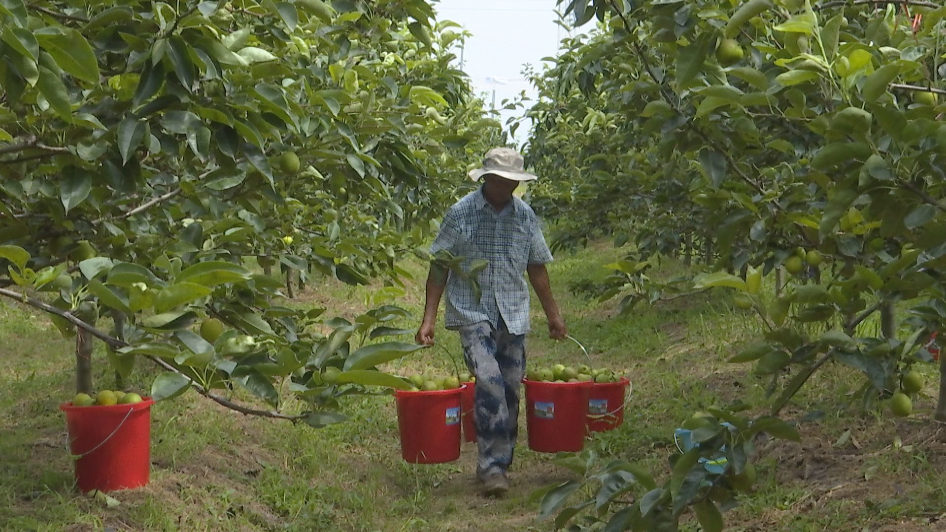 盛夏时节,梨果飘香。进入7月,在新洲区三店街竹园村100亩梨园基地内,沉甸甸的果实压弯了枝头,脆爽味甜的梨子迎来了丰收季节。