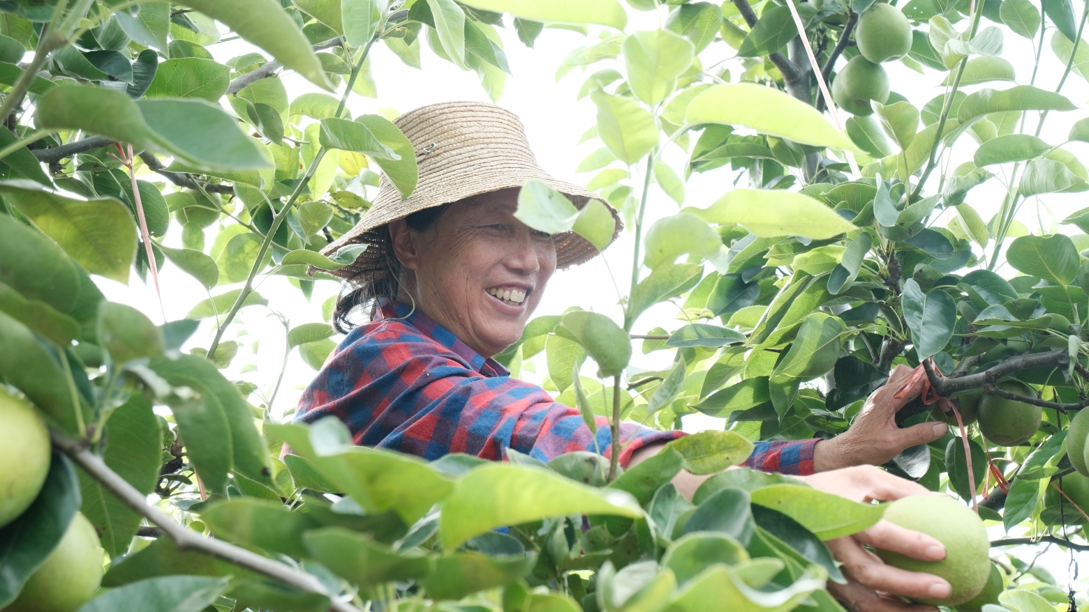 “我在这摘梨子,一天120块钱,离家近,比较方便。”三店街竹园村村民徐金焱高兴地说。
