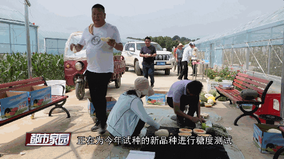 在乌龙泉街四化村西瓜种植基地,记者看到市农科院的专家们正在为今年试种的新品种进行糖度测试。