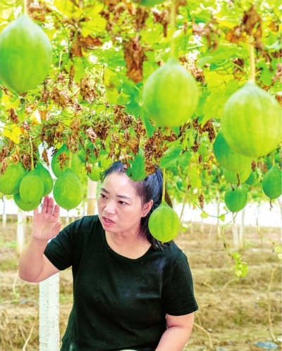蔡若薇介绍三店街道徐贵村中扬瓜篓基地发展情况。