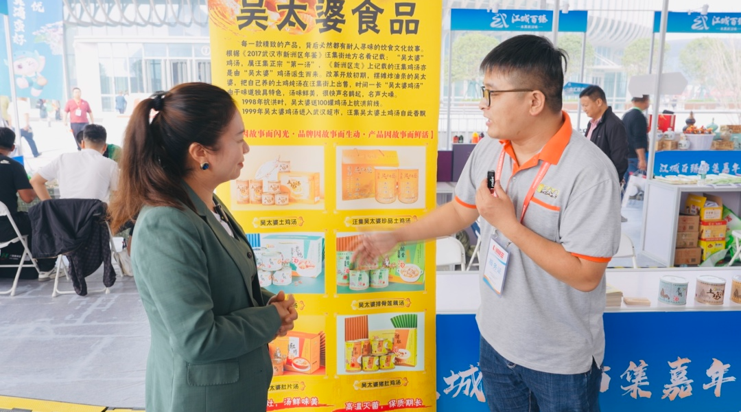 来自山东的参展商胡女士现场免费品尝了来自武汉新洲本地的汪集鸡汤,忍不住竖起大拇指,对本地的美食赞不绝口,“喝一小碗鲜美可口、热乎乎的鸡汤下肚,从舌尖到胃里、再到心里都是暖和的,我听工作人员介绍说‘新洲一罐神仙水,敢称楚天第一汤’”,果然名不虚传!我准备扫码在商城下单直接寄到老家,给家人们都尝尝武汉的美味”。