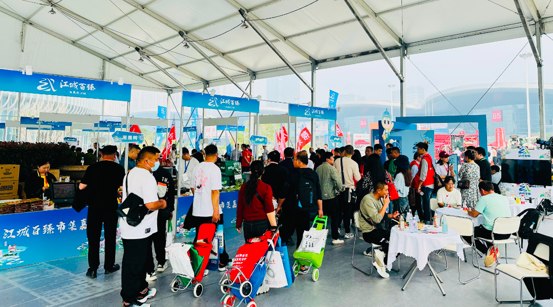 以盛会为媒,以美食会友;迎八方来客,品江城百臻。在“硬核农机”展出的同时,“江城百臻”作为武汉市农产品区域公用品牌,也彰显着武汉的“软实力”。本届国际农机展,“江城百臻”携手30余家本土优秀品牌目录企业及百余种优质特色农产品盛装亮相。“江城百臻”市集嘉年华展位面积500平方米,现场展销了汪集鸡汤、点溪园古法红糖、大汉口热干面、蔡甸豆丝、亚非西兰苔、新农牛肉、黄陂三鲜等近百种“本真武汉味”地方特色农产品,并设有农机展览体验区、商务合作洽谈区、达人现场直播区、游戏互动抽奖区、IP文创打卡区等。“江城百臻”市集嘉年华备受瞩目、广受好评,现场人潮涌动,市民游客们争相品鉴购买。
