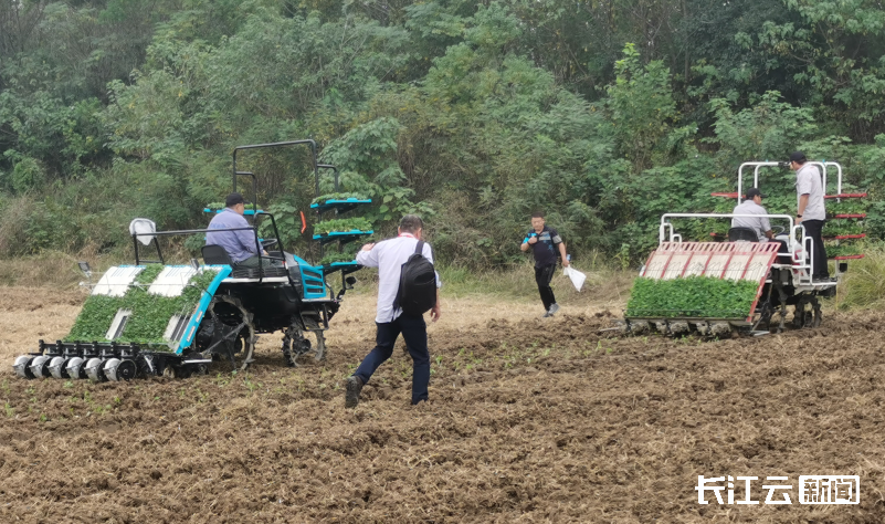 在田间活动中,长江云新闻记者看到30多家农机生产企业的近80台套机具在水稻收获、秸秆处理、稻田耕整、油菜种植、露地和设施蔬菜生产田块里,集中展现了智能化、无人化、全程机械化作业场景与效果。基于北斗导航、物联网、大数据的智慧农业技术,装配无人驾驶和作业质量监测系统的拖拉机、收获机、打捆机、播种机等智能农机,满足粮油菜增产增效的低碾压再生稻头季收获机、油菜毯状育苗播种与高速移栽机、蔬菜全自动移栽机等先进适用机具,轮番上阵、大显身手。