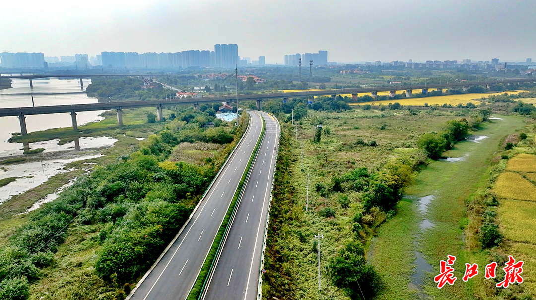 一路前行,山清水秀,树木葱茏,一座座白墙黛瓦、古色古香的徽派房屋远近高低,错落有致。不远处,滠水河宛如一条玉带静静流淌,阡陌纵横的田野里,稻穗在太阳底下泛着流动的金光。