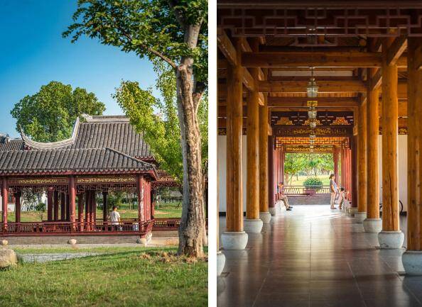 定远公园是藏于城中为数不多的绝美湿地,气势恢宏的定远阁飞檐翘角、古韵悠悠,与四周温婉灵动的江南水乡交相辉映。公园之外,高铁列车穿城而过,满载着人们对美好生活的向往和期待。