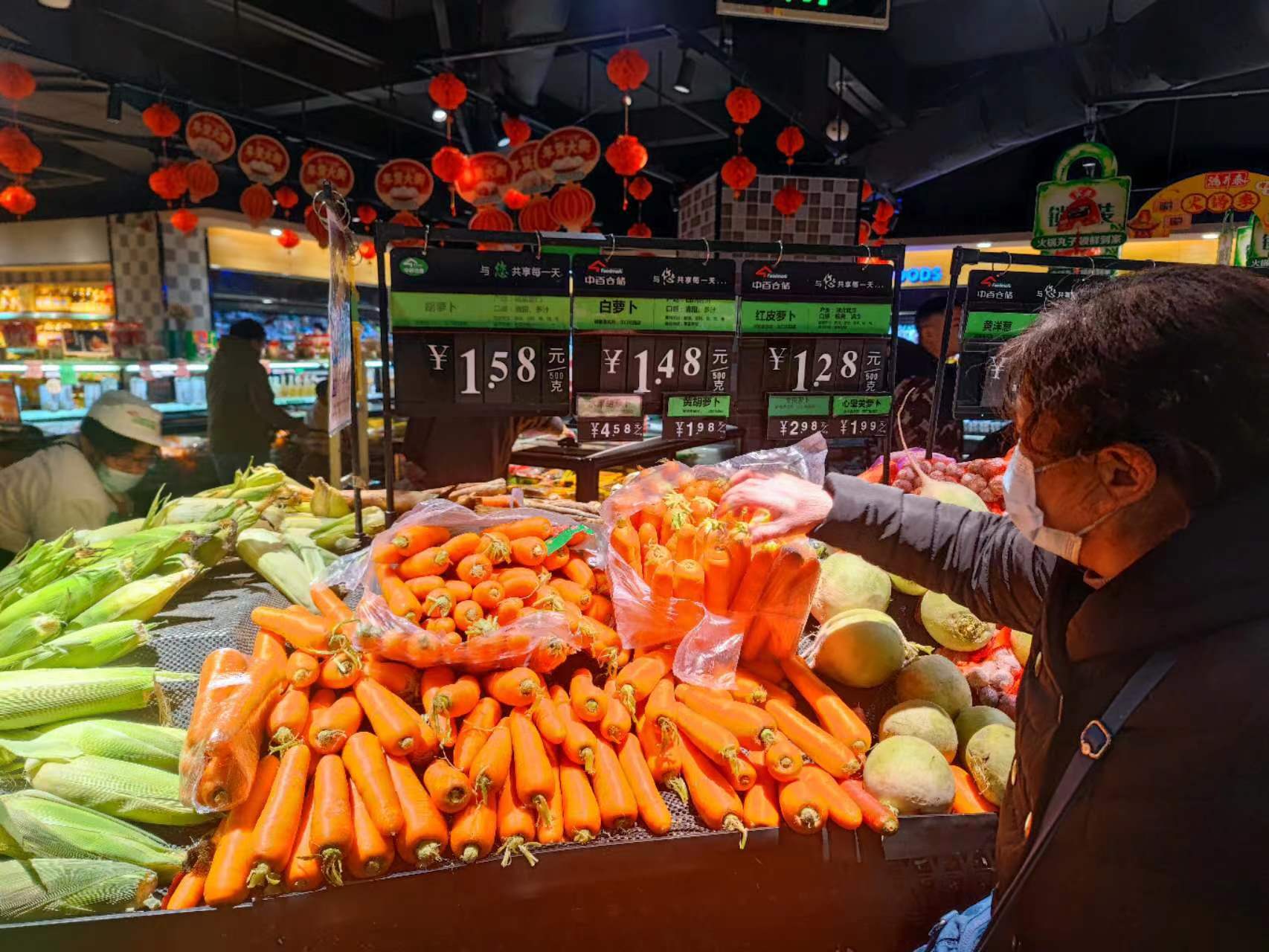 在农产品销售终端,记者走访冬储春供企业中百仓储、武商超市等了解到,目前各种蔬菜供应充足,价格较为平稳,特别是1元以下大白菜、白萝卜、包菜等,价格亲民,最受欢迎。