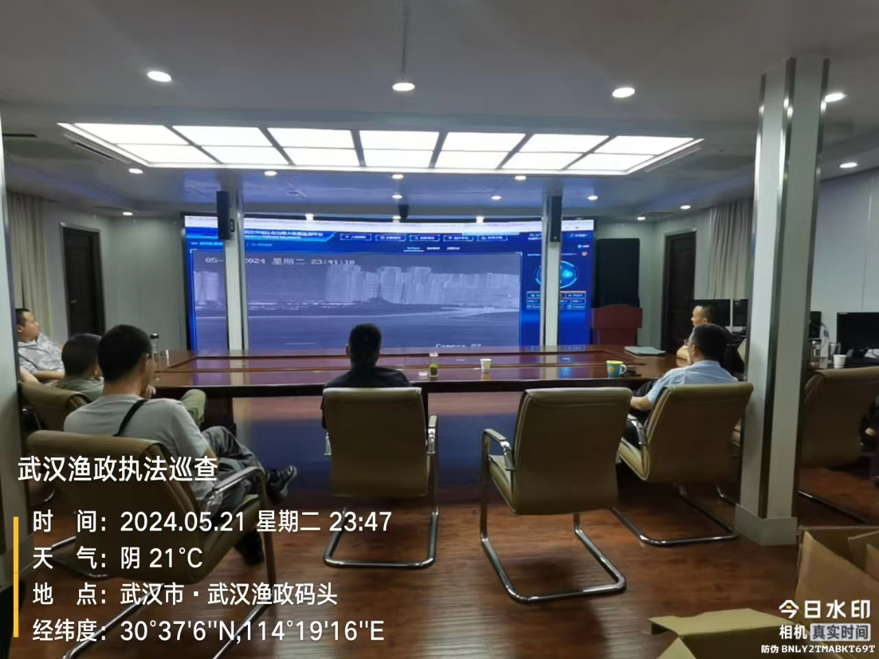 5月21日,暮色降临,暴雨骤停,波涛汹涌的江面泛起水光点点,一场行动正在悄然进行,此时的武汉渔政码头灯火通明,执法人员正盯着渔政天网系统,查看平台里面的预警信息。