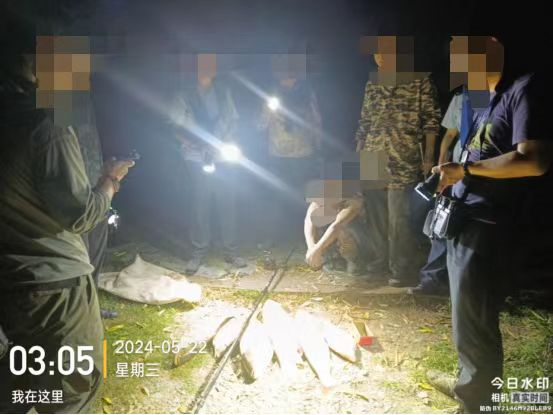 “报告渔政指挥中心,经执法人员现场取证,刚才锚鱼者锚到渔获物7条,其中有‘超米级’大鱼江鲶1条,重达近10公斤。”5月22日凌晨,武汉渔政执法人员联合武汉市公安局水上分局当场抓获2名锚鱼者。
