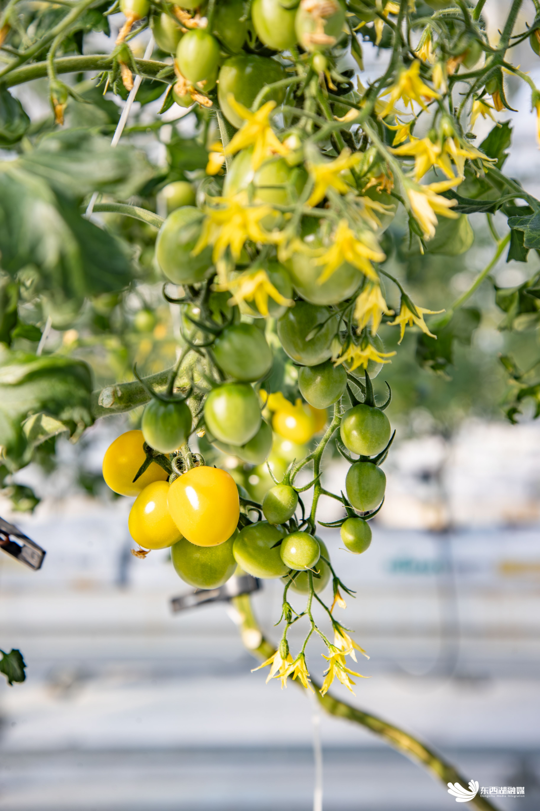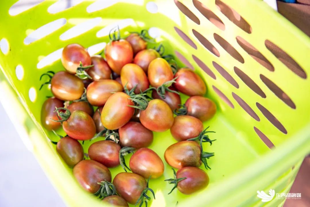 在番茄种植区,同样是一片生机勃勃的景象。番茄苗上结满了果实,工作人员按照果实的成熟程度进行采摘。记者尝了一颗番茄,满口爆汁,十分香甜。工作人员龚春兰介绍,番茄现在刚刚上市,订单十分火爆,每天需要采摘、打包至下午5点。