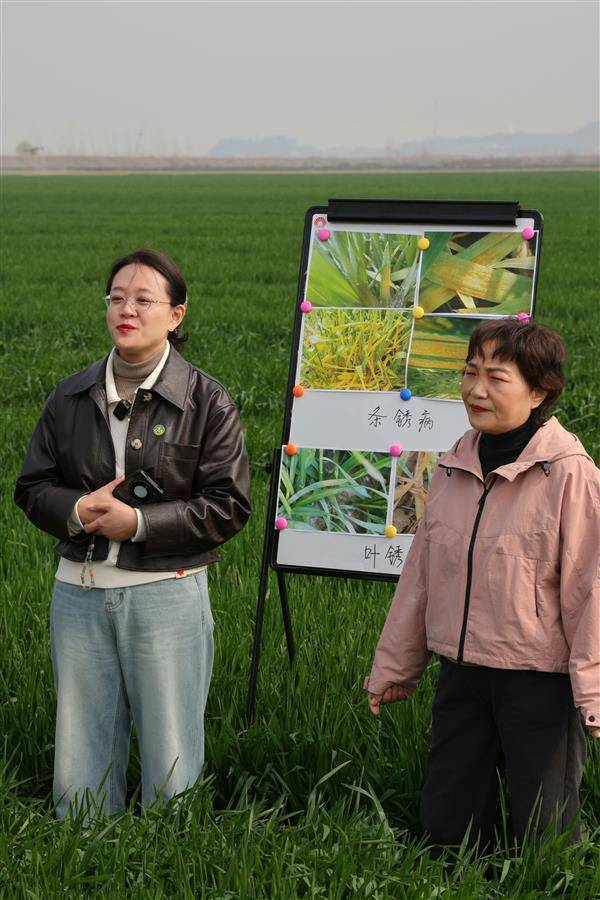 武汉市江夏区大诚农业合作社的麦田里,无人机巡航喷洒的画面与专家现场讲解声交织成春日交响曲。这场持续60分钟的直播课吸引超50万人次在线参与,许艳云研究员通过“田间急诊室”互动,用口诀将小麦复杂病虫害防治技术讲得通俗明白,“晴天见花首遍打,7天补防莫忘掉;遇雨重施保穗好,三关严守产量高。”