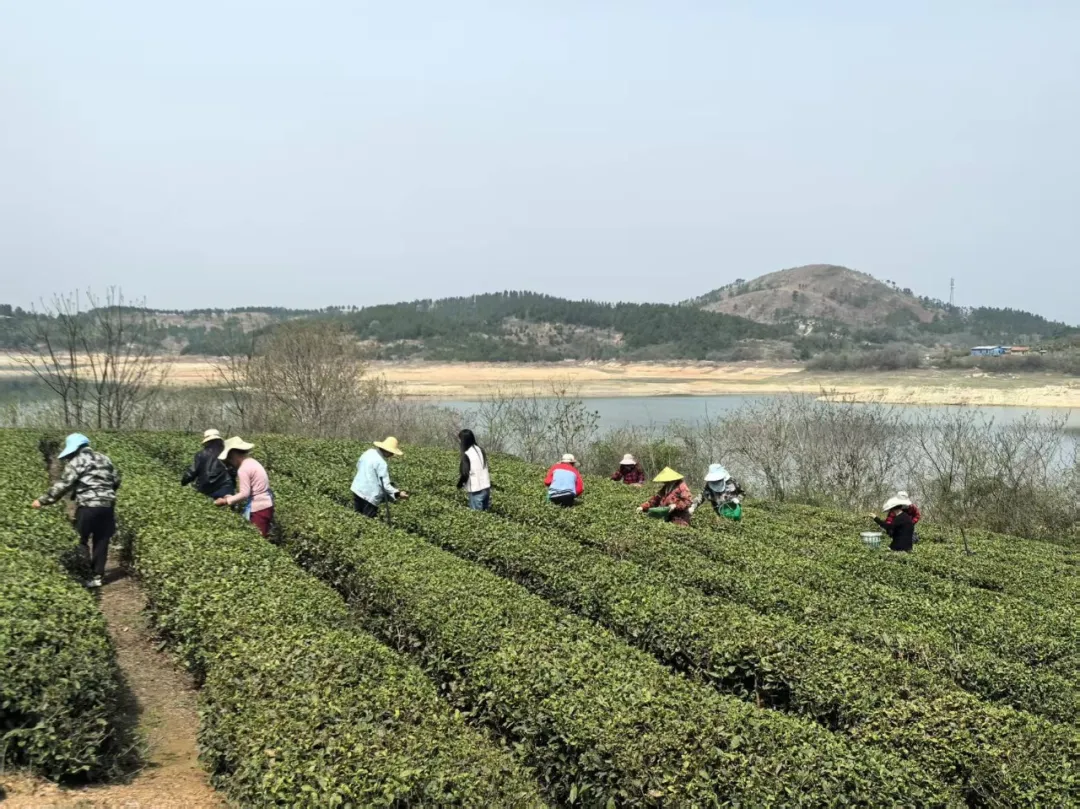 滤尘种养殖专业合作社的茶园内,农民正在采茶