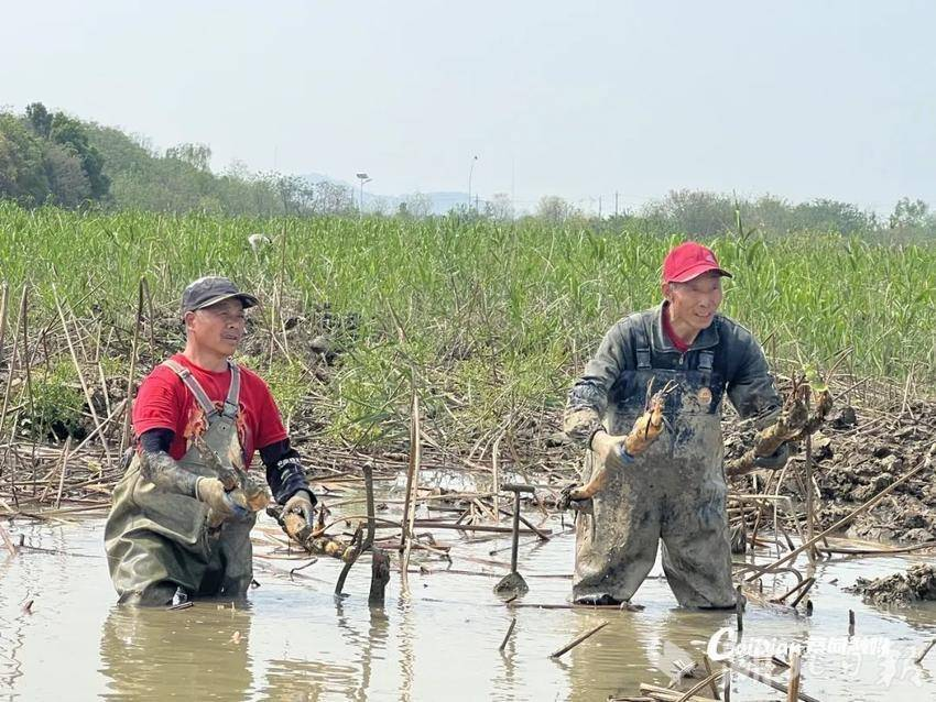 “这批藕种苗即将移栽,带着原生土就像‘带着家’,根系适应新环境,更易扎根。”张少平捻着藕节上的泥土解释,徒手挖藕能最大程度保护藕体完整性,保留附着的原生泥土,使移栽后的种苗存活率达95%,而机械水枪采挖易损伤藕节,存活率明显降低。