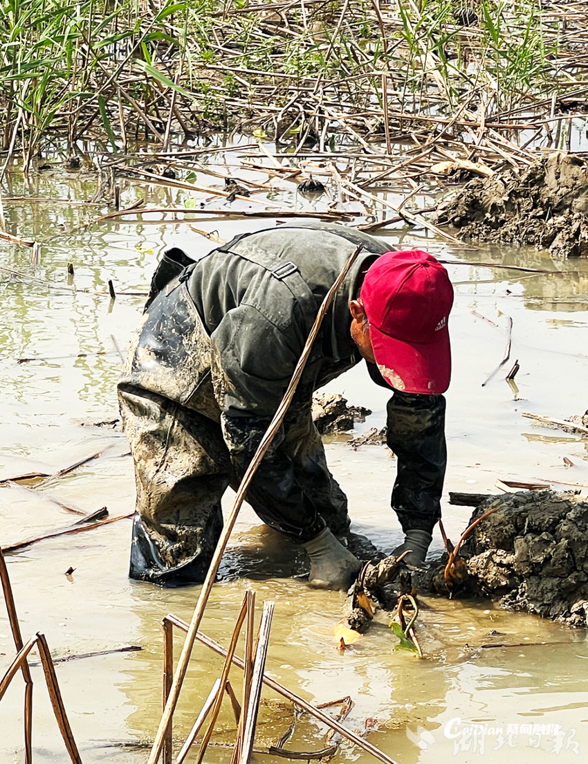 公司董事长李正旺表示,尽管徒手挖藕日均200-300斤,效率仅为机械采挖的三分之一,但企业仍坚持聘请十余名经验丰富的老师傅用古法采挖,并支付老师傅们较机械采挖2倍多的工钱,换来的是种苗品质的绝对保障。“他们是蔡甸千年莲藕种植技艺的活态传承者,未来公司还将聘他们为技术顾问,向更多合作社推广经验。”李正旺说。