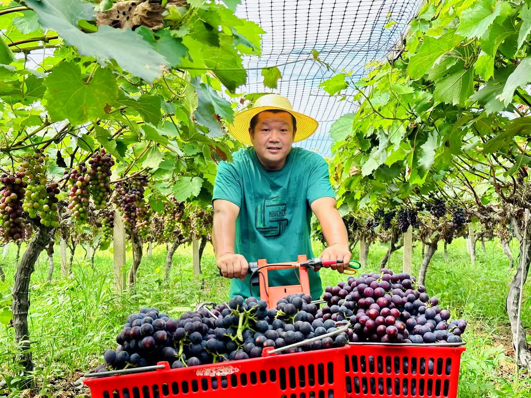 “我们从品种选择、土壤改良到水肥管理,每个环节都严格把控,确保葡萄品质。”占银才说。果园采用优选品种、平衡施肥、绿色防控等现代化种植技术,不仅减少了农药使用,还提高了果实糖度和口感。目前,夏黑葡萄已进入成熟期,其特点是果肉紧实、甜脆多汁,深受消费者喜爱。紧随其后,阳光玫瑰、巨峰等品种也将陆续上市,采摘期可持续至10月中旬,满足不同消费者的需求。