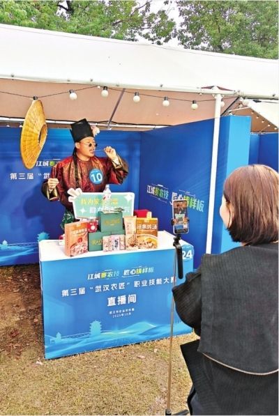 户外广场的农播客赛场,烟火气裹着活力扑面而来。选手们支起设备,洪山菜薹、汪集鸡汤、蔡甸莲藕、黄陂荆蜜等武汉特色农产品,直接变成直播间“流量密码”。“洪山菜薹紫红脆嫩,还含原花青素!武汉人冬天最馋的,就是妈妈炒的腊肉菜薹!”主播赵兰举着刚采的菜薹带货,吸引了不少粉丝下单购买。