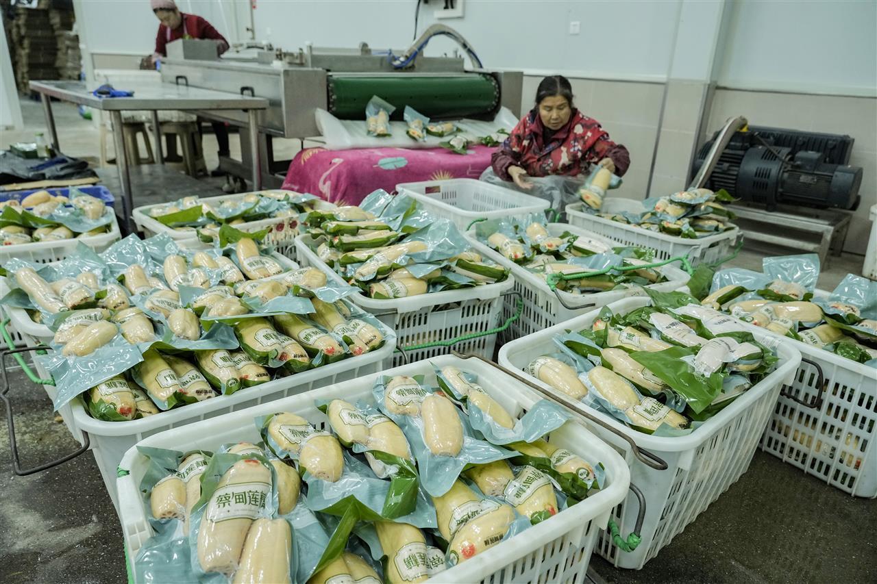 在湖北武汉,品牌价值超过36亿元的蔡甸莲藕已成为生鲜市场、食品市场上最受宠的农副产品之一。因为在加工线上有了更多自动化设备加持,今年的蔡甸莲藕将“穿”上样式更多元、技术更强大的保鲜新装,以更高的“颜值”和附加值销得更远、卖得更多。