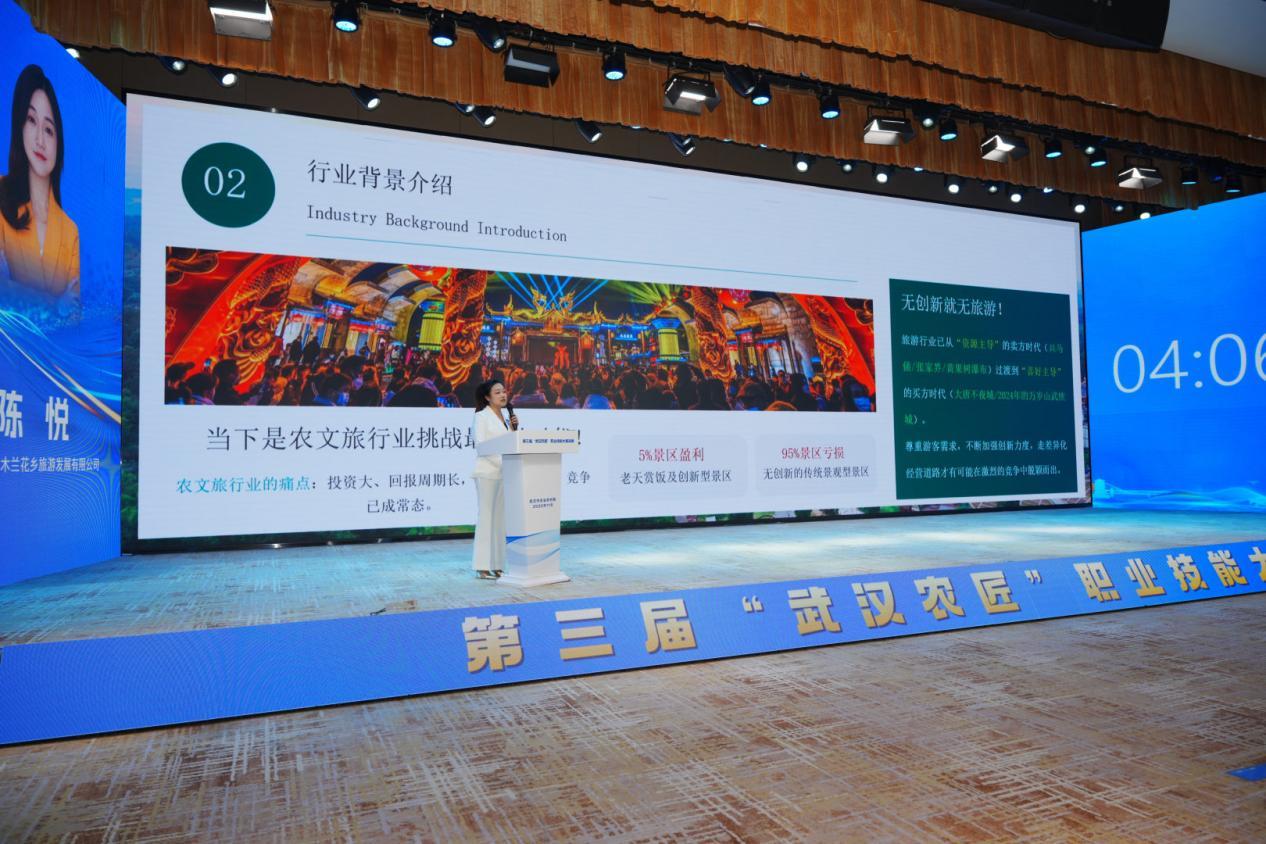 大赛精彩纷呈,选手赵兰和团队穿越成古人,讲述“江城百臻洪山菜薹·金殿御菜”故事,90后的选手陈悦,深情讲述与木兰不夜城文旅项目一起成长,带动周边村民共同致富的事迹,赢得掌声阵阵。
