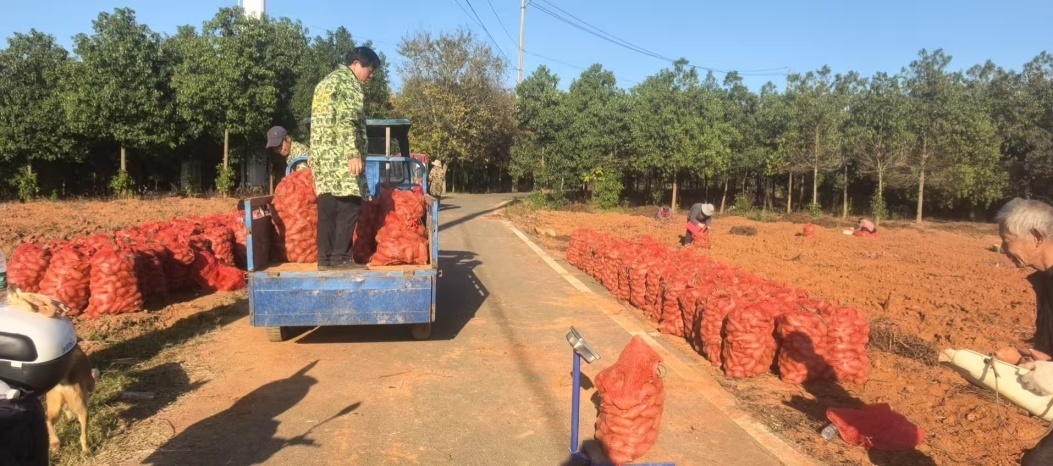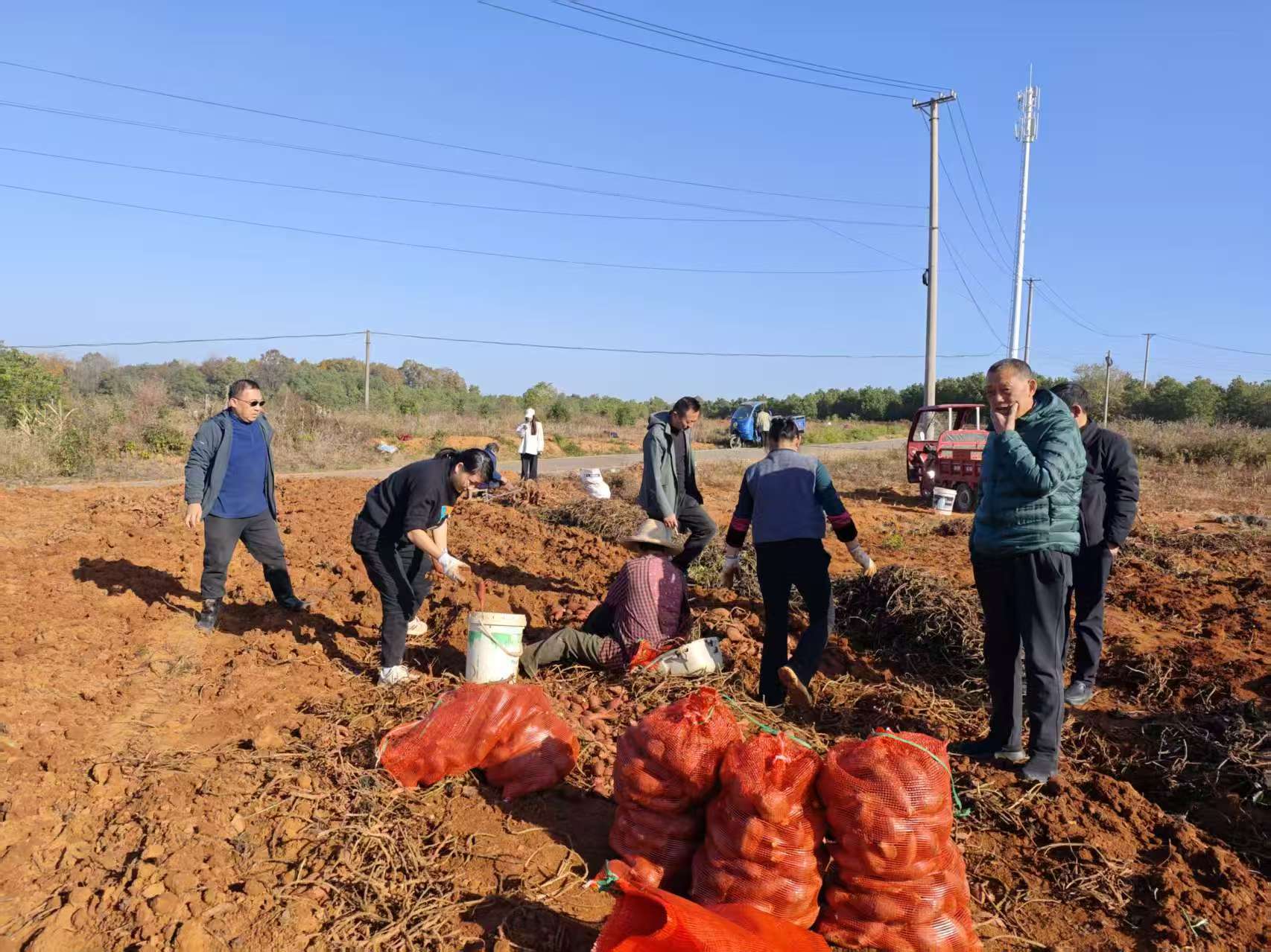 2025年4月,绿化村“两委”为了增加村集体经济收入,在山坡街道党工委、保福片区党委以及片区驻村牵头单位市政协办公厅的指导下,和驻村工作队一起到胜丰村薯旺公司进行实地考察调研,决定在绿化村试种优良红薯品种“丝滑”,得到市政协办公厅驻村领导的大力支持,提供种苗和技术指导,经过半年多的辛勤耕种,在11月份实现了丰收,并且在驻村单位的支持下,很快销售一空。