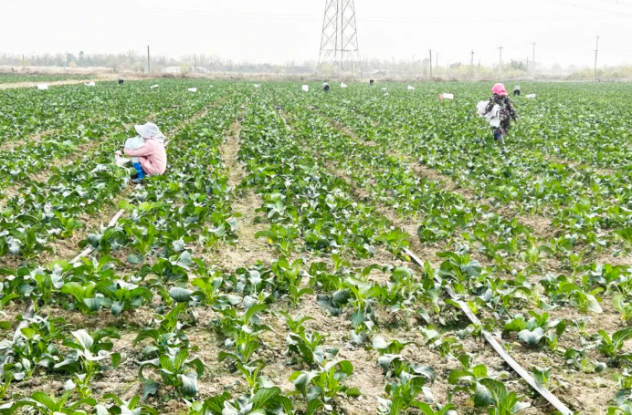 冬日的黄陂田间,一派丰收盛景,5000亩板蓝根菘菜心迎来采收期。这批脆甜鲜嫩的特色蔬菜,不仅是本地市民餐桌上的“新宠”,还将通过冷链物流远销广东省的深圳等地,为市民餐桌增添健康新选择。