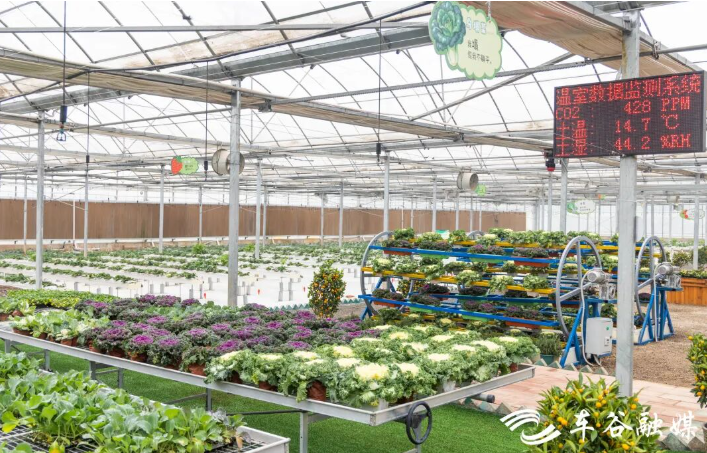 占地面积约1500亩的“生态旅游体验基地”内,矗立着一座座智慧大棚。大棚内,显示屏上可以精准显示温度、湿度、土壤含氮量等数据,松花菜、紫甘蓝、西兰苔、皱叶菜等作物长势良好。开园后,这里可采摘、可研学,成为亲子好去处。