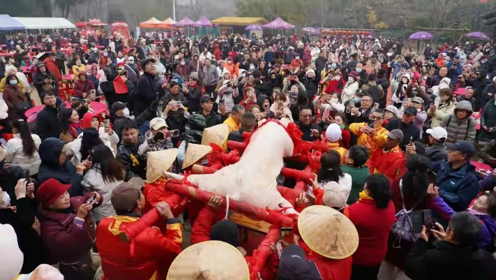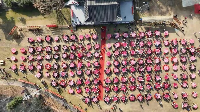 一头系着红绸带的猪在众人簇拥下巡游,蒸笼揭开时热气裹着肉香弥漫开来,上千人围坐共享宴席——这幅热闹的乡村图景从武汉黄陂出发,正通过互联网传向全国,甚至远渡重洋抵达美国。