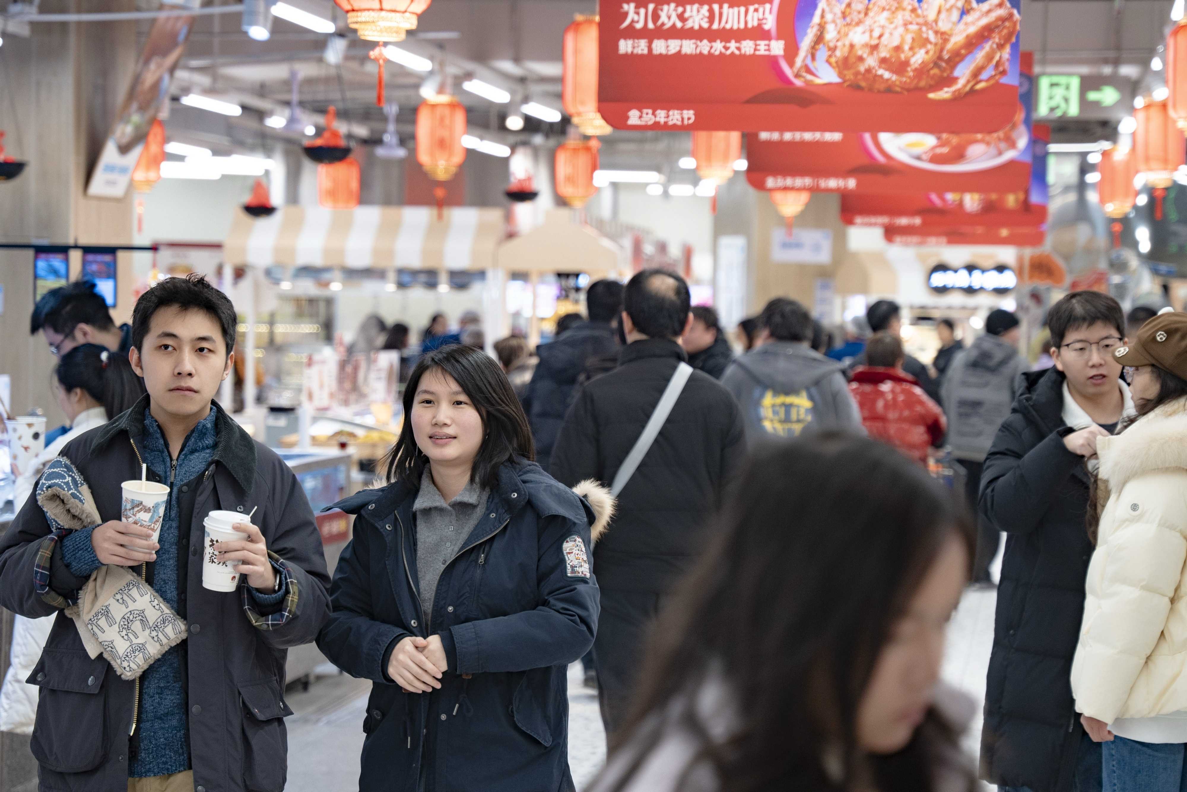 随着年货礼盒、年宵花、年菜等陆续上市,盒马门店的年味儿也逐渐浓厚,武汉各大门店都换上了喜庆的“新年装”。