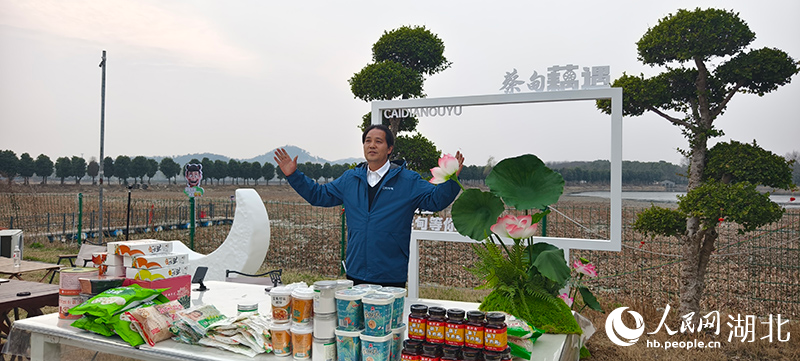 李正旺在直播展示自家的藕产品。人民网记者 周倩文摄