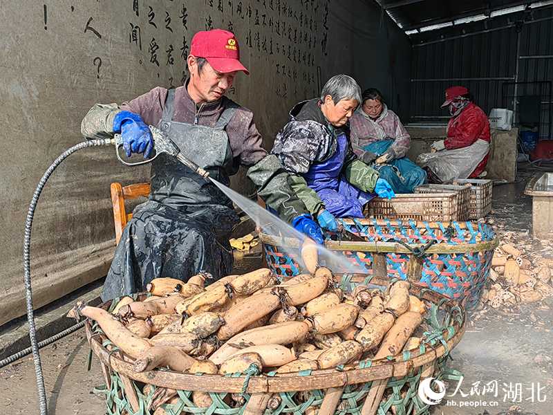 清洗泥土后,准备将藕送去深加工。人民网记者 郭婷婷摄