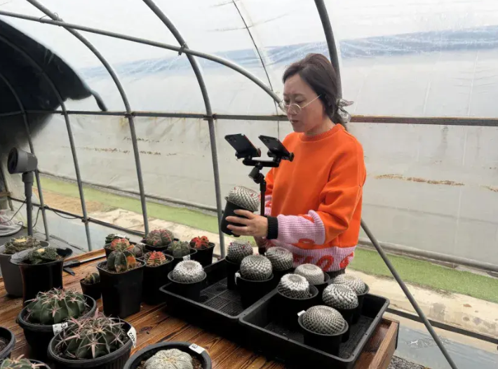 “这株奇迹兜,七八公分的尺寸,一物一价,喜欢的可以直接拍!”在光琳农业大棚内一隅,主播正手持两部手机实时直播,指尖轻触球体细致讲解品相,耐心回应直播间高端藏家的提问。