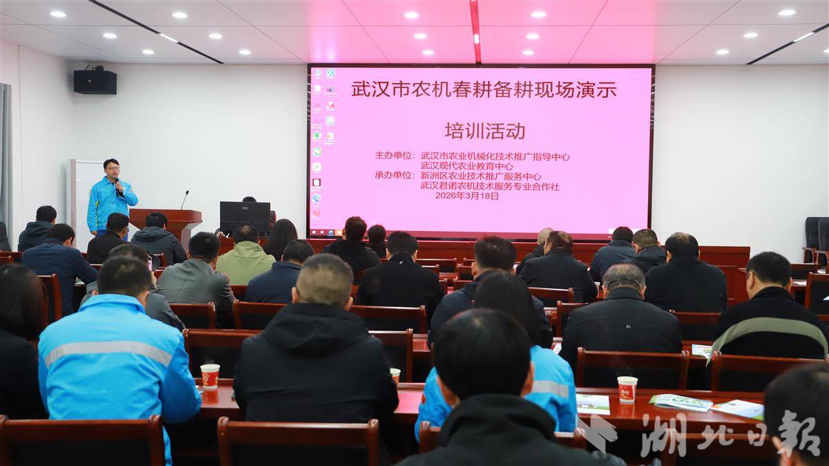 春风拂面万象新,铁牛轰鸣闹春潮。3月18日,武汉市农机春耕备耕现场演示培训活动在新洲区涨渡湖街道火热开展。工厂化育秧、综合农事服务中心智慧平台等“硬核”技术吸睛全场,让参加活动的种植户们直呼“干货满满,春耕底气更足了!”