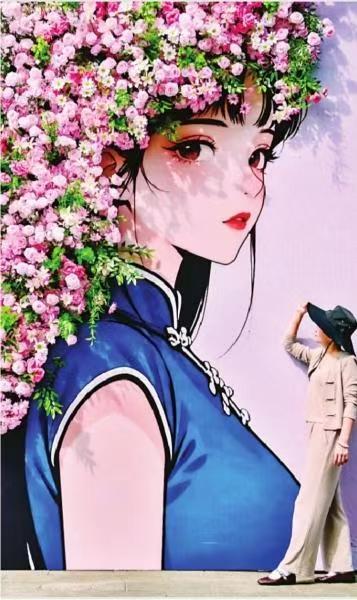 新洲区邾城街头的“簪花姑娘”