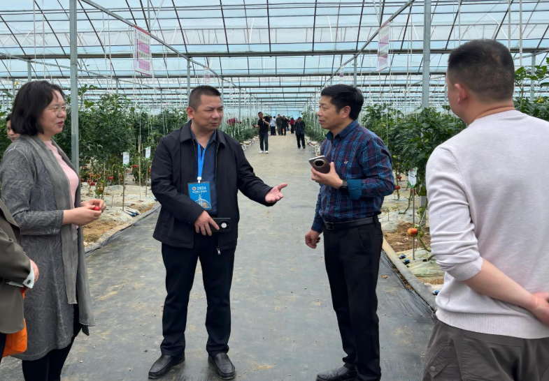 在地展基地内,数十个优新番茄、辣椒、黄瓜品种整齐排列,红似玛瑙、黄如琥珀的番茄,翠绿修长、皮薄肉厚的辣椒,以及清脆爽口、形态各异的黄瓜,在同一种植条件下争奇斗艳、果香扑鼻。参会人员穿梭于田垄之间,现场品尝,从外观、口感、风味到耐储运性、商品性等多个维度对品种进行细致评估。