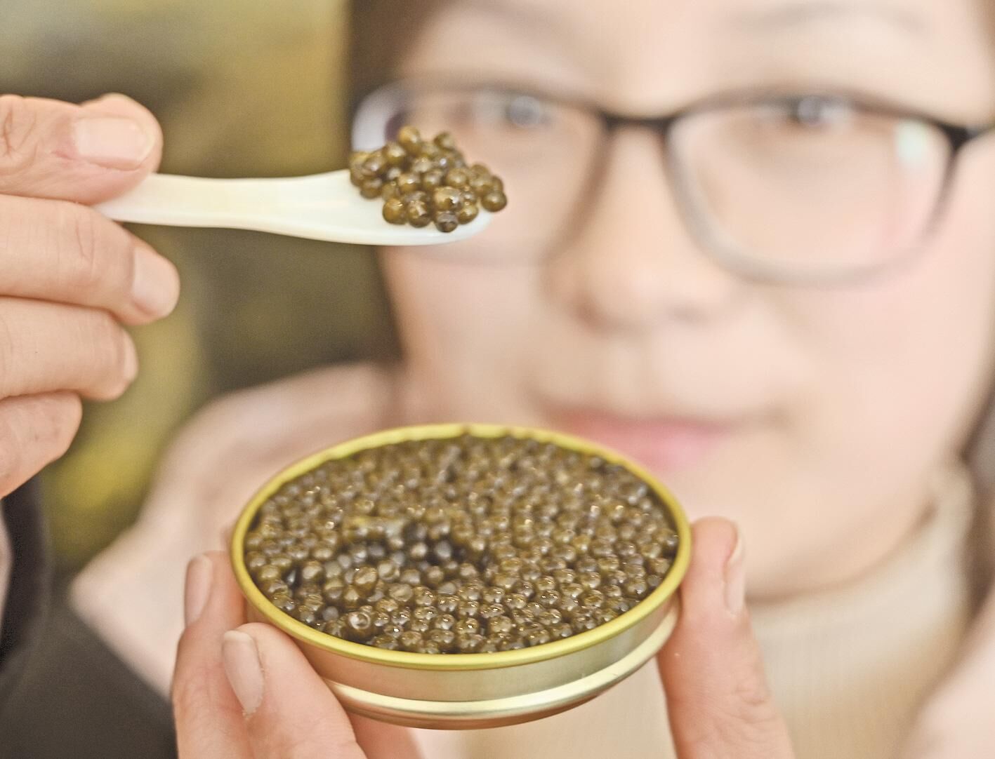 湖北清江鲟鱼谷水产品加工有限公司首批鱼子酱,即将出口中东和欧洲,订单总价值近200万元。(湖北日报全媒记者 刘曙松 通讯员 朱灿义 摄)