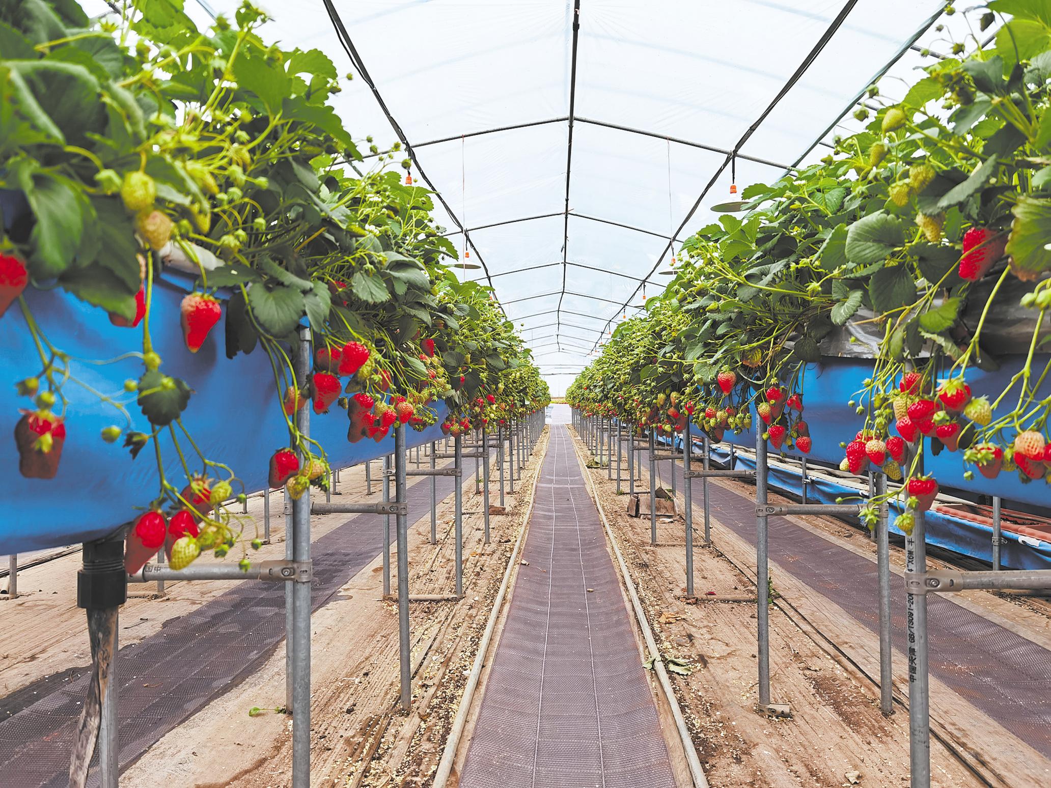 草莓植株较矮。采用传统地栽模式,施肥除草、疏果摘叶都需要弯腰操作,费工又费力。要吸引更多年轻人来从事草莓生产,栽培方式就必须得到改变。草莓高架基质栽培新模式应运而生。