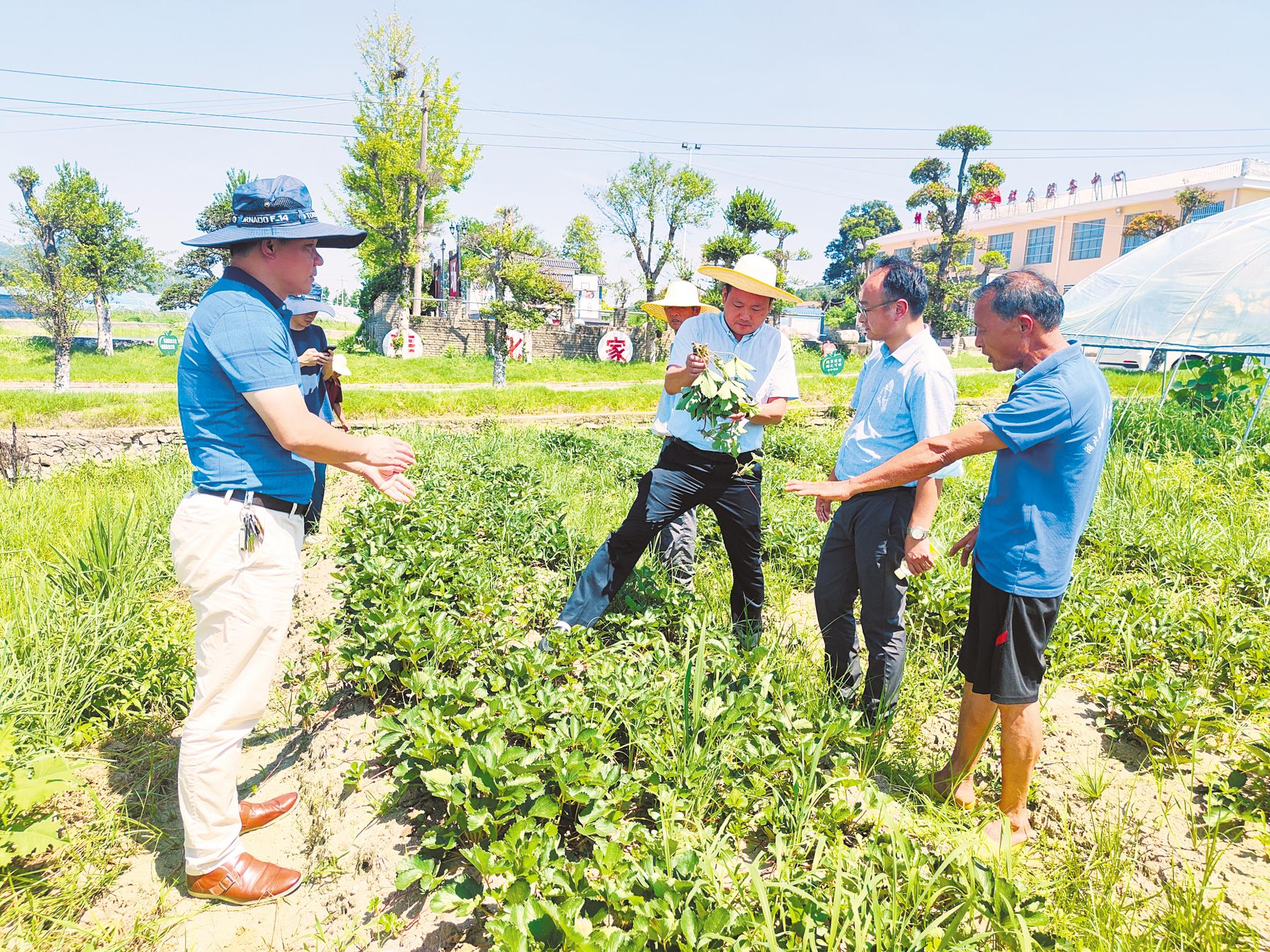韩永超(中)和同事在脱毒苗生产基地开展技术服务