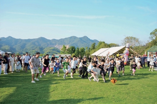 浙江义乌市莱山村乡村CEO江亚捷在露营地策划乡村抓鸡大赛。 受访者供图